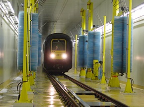 鐵路列車自動(dòng)清洗機(jī)可實(shí)現(xiàn)對(duì)列車車廂、火車頭等外面進(jìn)行全面、徹底的自動(dòng)清洗,設(shè)備主要由噴淋系統(tǒng)、洗刷系統(tǒng)、干燥系統(tǒng)、水處理系統(tǒng)(選配)、預(yù)警系統(tǒng)及控制系統(tǒng)等組成,可通過(guò)噴淋濕潤(rùn)、預(yù)備洗刷、洗滌洗刷、漂洗洗刷和吹掃干燥等不同的清潔方式,配合列車勻速通過(guò)清洗工作場(chǎng)地除去列車表面的塵埃和污垢,達(dá)到運(yùn)營(yíng)列車潔凈要求。[查看詳情]