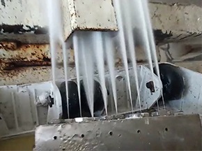 高壓水清洗裝置是利用高壓泵產(chǎn)生的水壓力,直接沖擊軋輥表面上附著的鋅層,水對鋅層滲透、剪切、壓縮、破碎,并引起裂紋擴散和水楔作用,造成大量裂縫擴散,從而將軋輥表面污垢清除掉。[查看詳情]