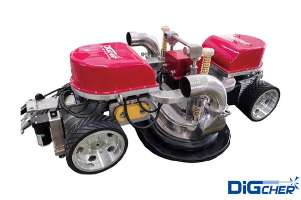 德高潔于2008年開始船體除銹機(jī)器人的開發(fā),目前擁有成熟的整體解決方案,并申報(bào)了實(shí)用新型專利(專利號(hào):ZL 2019 2 0432325.5)。該系統(tǒng)操作方便、自動(dòng)化程度高,通過站在地面上的操作人員,手持氣動(dòng)控制器可以操控機(jī)器人在船體外立面上X、Y方向任意行走。CR4G-UHP380船體除銹機(jī)器人-船舶除漆機(jī)器人是將超高壓水射流除漆、真空吸附、爬壁機(jī)器人作業(yè)三者協(xié)調(diào)于一體。通過超高壓泵獲得水射流除漆除銹能量,以爬壁機(jī)器人為載體,搭載真空除漆除銹清洗器,將除漆過程中產(chǎn)生的漆渣和銹渣廢水回收排放,達(dá)到減少排放、回收環(huán)保的目的。