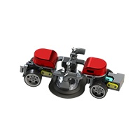 機(jī)器人采用四輪驅(qū)動,差速轉(zhuǎn)向,具有小曲率通過能力,可跨越焊縫等障礙,負(fù)載能力大,抗風(fēng)能力強(qiáng),可以拖拽動力電纜、高壓管、清潔劑箱等爬上超過120米高的風(fēng)電塔筒;