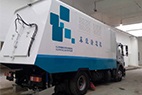 4、按全啟按鈕,引風(fēng)機(jī)首先啟動(dòng),高壓水啟動(dòng);四個(gè)刷盤下降至工作高度,旋轉(zhuǎn);三個(gè)負(fù)壓吸口導(dǎo)流罩也降至工作高度;車啟步、工作開始。道槽、路基和路面同時(shí)清潔。